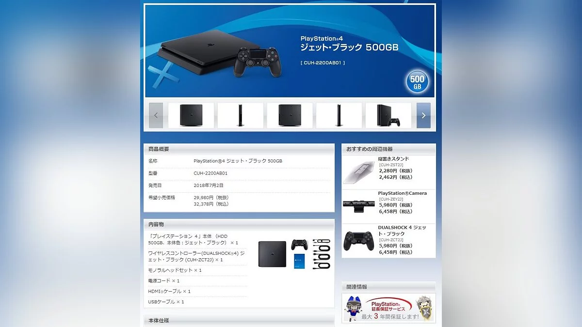 Всего на сайте появилось несколько версий консоли: PS4 Slim 1 ТБ Jet Black (CUH-2200BB01), 500 ГБ Jet Black (CUH-2200AB01), 1 ТБ Glacier White (CUH-2200BB02). Примечательно, что версия PS4 Glacier White на 500 ГБ по-прежнему имеет ревизию CUH-2100AB02, введенную Sony в 2017 году.