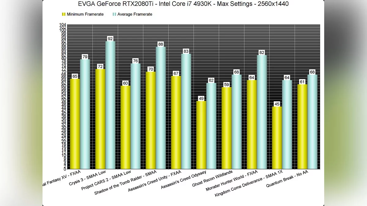 Многие издания продолжают тестировать топовую видеокарту Nvidia RTX 2080Ti в требовательных играх. На этот раз игровое издание DSOgaming решило проверить, какой FPS покажут на новом графическом процессоре Crysis 3, Kingdom Come: Deliverance, Quantum Break, Final Fantasy XV, Project CARS 2, Shadow of the Tomb Raider, Assassin's Creed: Unity, Assassin's Creed Odyssey, Tom Clancy's Ghost Recon: Wildlands и Monster Hunter: World.