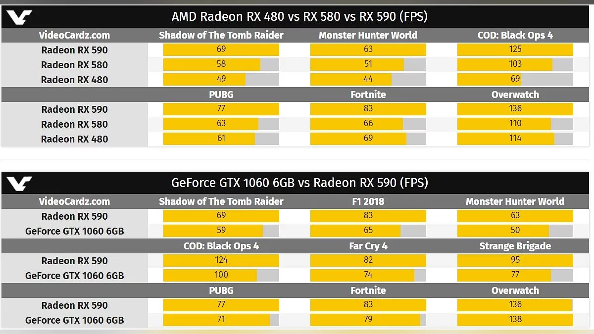 Тесты провели в таких играх, как PUBG, Fortnite, Overwatch, Call of Duty: Black Ops 4, Monster Hunter World, Shadow of the Tomb Raider, F1 2018, Strange Brigade и Far Cry 4. Видеокарту также сравнили с Nvidia GTX 1060.