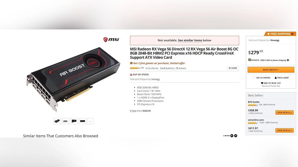 RX Vega 56 была выпущена полтора года назад и изначально стоила $399. Постепенно цена начала уменьшатся и сейчас, скорее всего, достигла минимума. В магазинах модель можно встретить за $280 — примерно столько же должна стоить и GeForce GTX1660Ti.