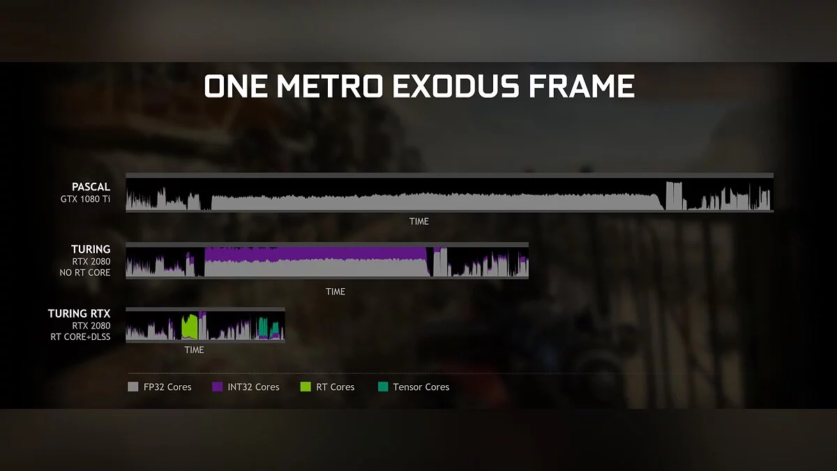 Разницу в производительности Nvidia показала на примере Metro Exodus: даже с отключенными RT-ядрами RTX 2080 на треть быстрее GTX 1080 Ti.