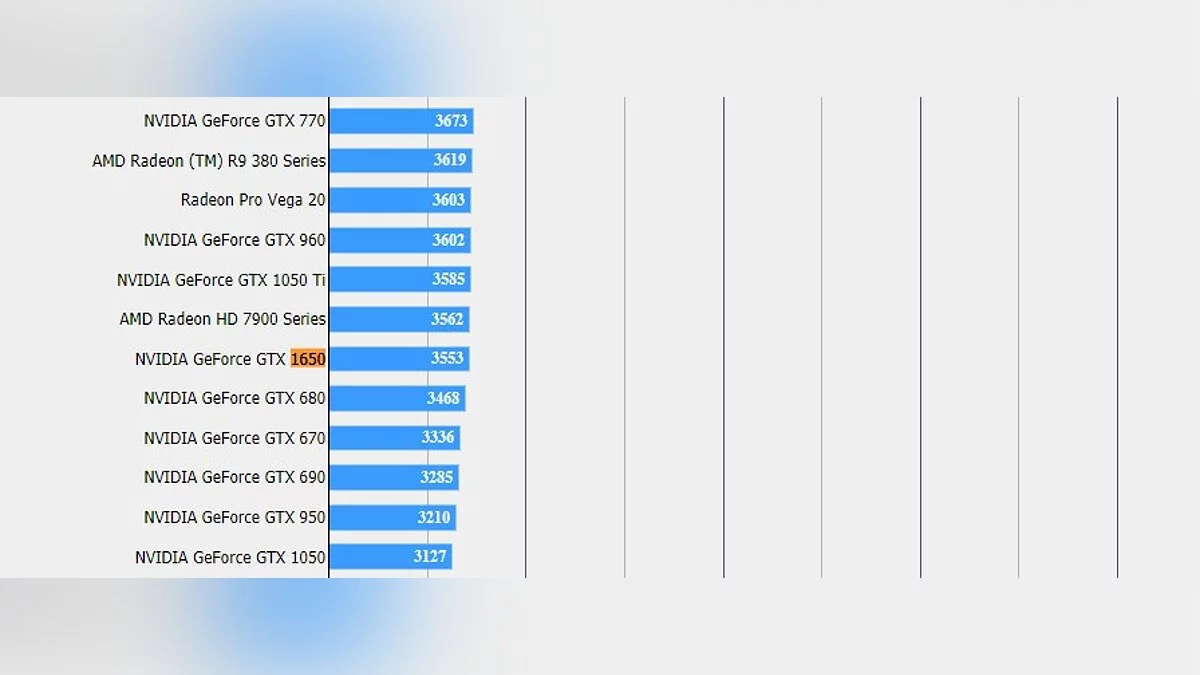 Модель тестировалась на низких настройках графики при разрешении 2560x1440. Результаты не обнадеживают: GTX 1650 набрала 3553 «попугая», немного уступив по производительности GTX 1050 Ti и GTX 960.