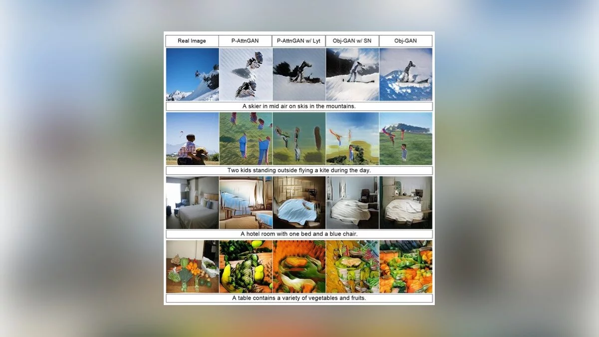 В основе лежит нейросеть ObjGAN, которая анализирует текст и выделяет слова-объекты, располагая каждый из них на изображении. И если ранее алгоритмы создавали картинки, контролируя их качество, то эта сеть дополнительно анализирует реалистичность объектов и насколько они соотносятся друг к другу в рамках композиции на основе описания.