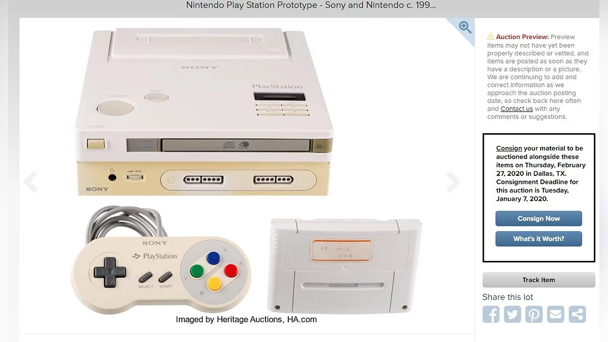 Оригинальный гибридный прототип всеми известной PlayStation, созданный в рамках партнерства Sony и Nintendo, выставят на аукцион в феврале 2020 года. Обладатель очень редкого экземпляра отмененной приставки уже отказывался от предложений в несколько миллионов долларов. Теперь же стоимость эксклюзивной консоли решат покупатели.