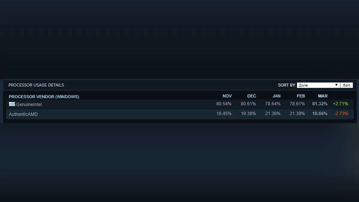 В Steam назвали самые популярные процессоры и видеокарты среди геймеров за март