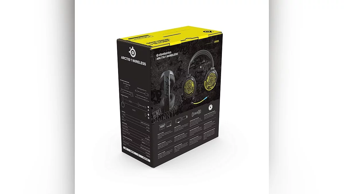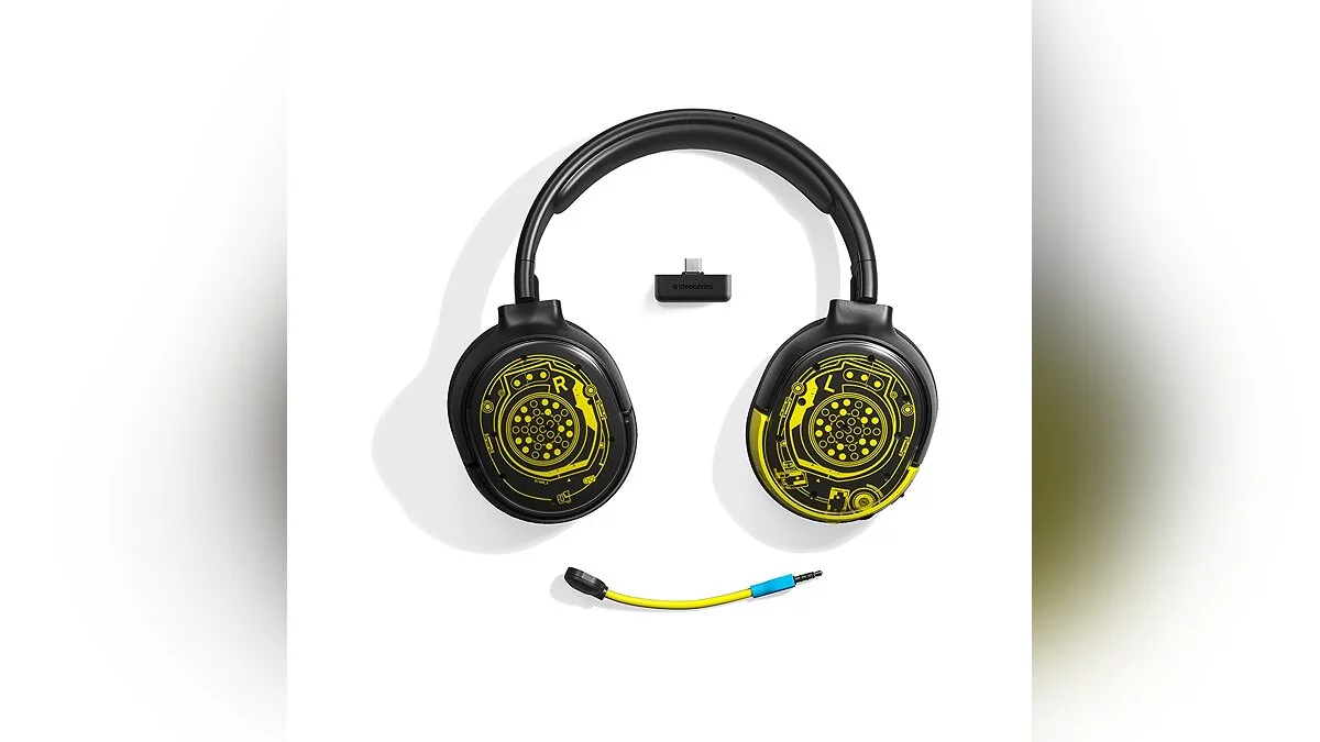 Гарнитурой выступает модель SteelSeries Arctis 1 Wireless. Как и предполагалось, она выполнена в расцветке Cyberpunk 2077. В описании указано, что устройство относится к лимитированному изданию и совместимо с PC, PS4, Xbox One, Nintendo Switch/Switch Lite и Android.