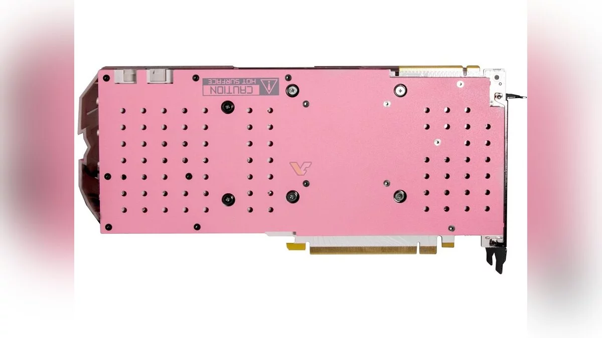 От обычной версии новинка получила печатную плату белого цвета и систему охлаждения с двумя вентиляторами. А вот металлический кожух кулера и задний бэкплейт окрасили в розовый цвет. Вентиляторы тоже не остались в стороне и получили прозрачную крыльчатку с розовой подсветкой.