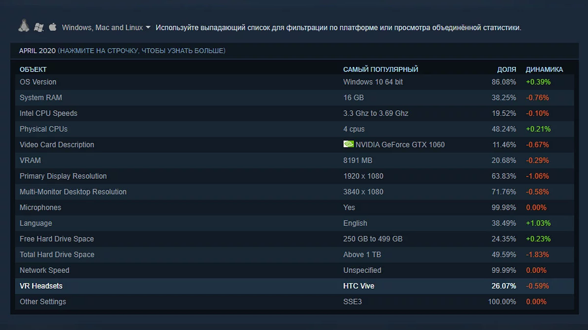 Недавно в Steam подвели итоги апрельского опроса среди пользователей. Как обычно, речь идет о самом популярном железе (только среди пользователей Steam).