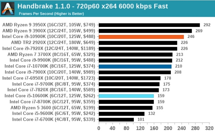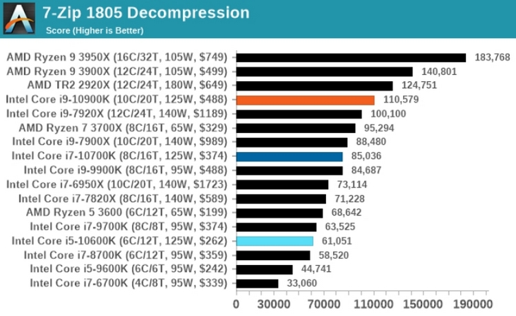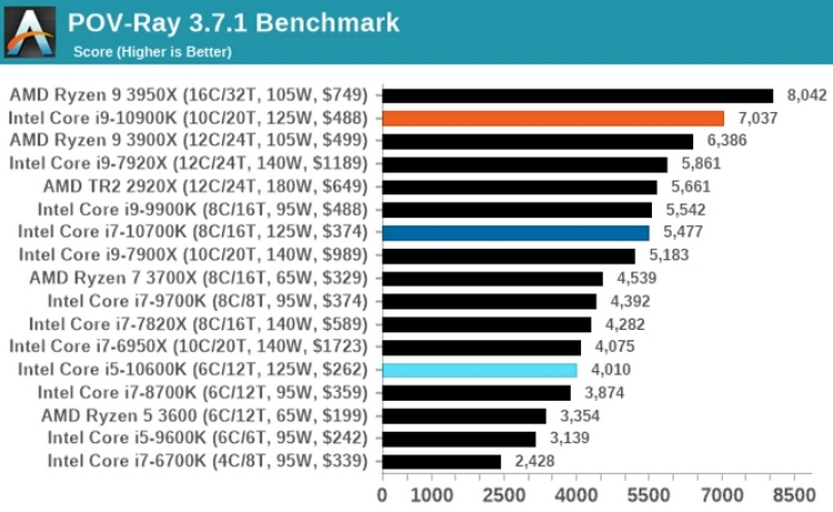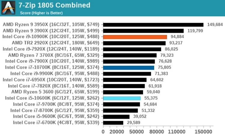 Совсем недавно Intel выпустила процессор Core i9-10900K (10 ядер и 20 потоков), в результате чего в сети появились полноценные тесты новинки. Его также сравнили с топовыми процессорами от AMD, включая Ryzen 9 3950x.