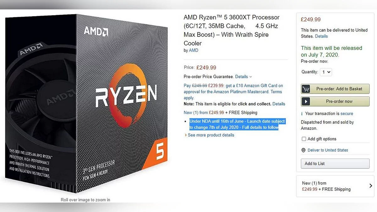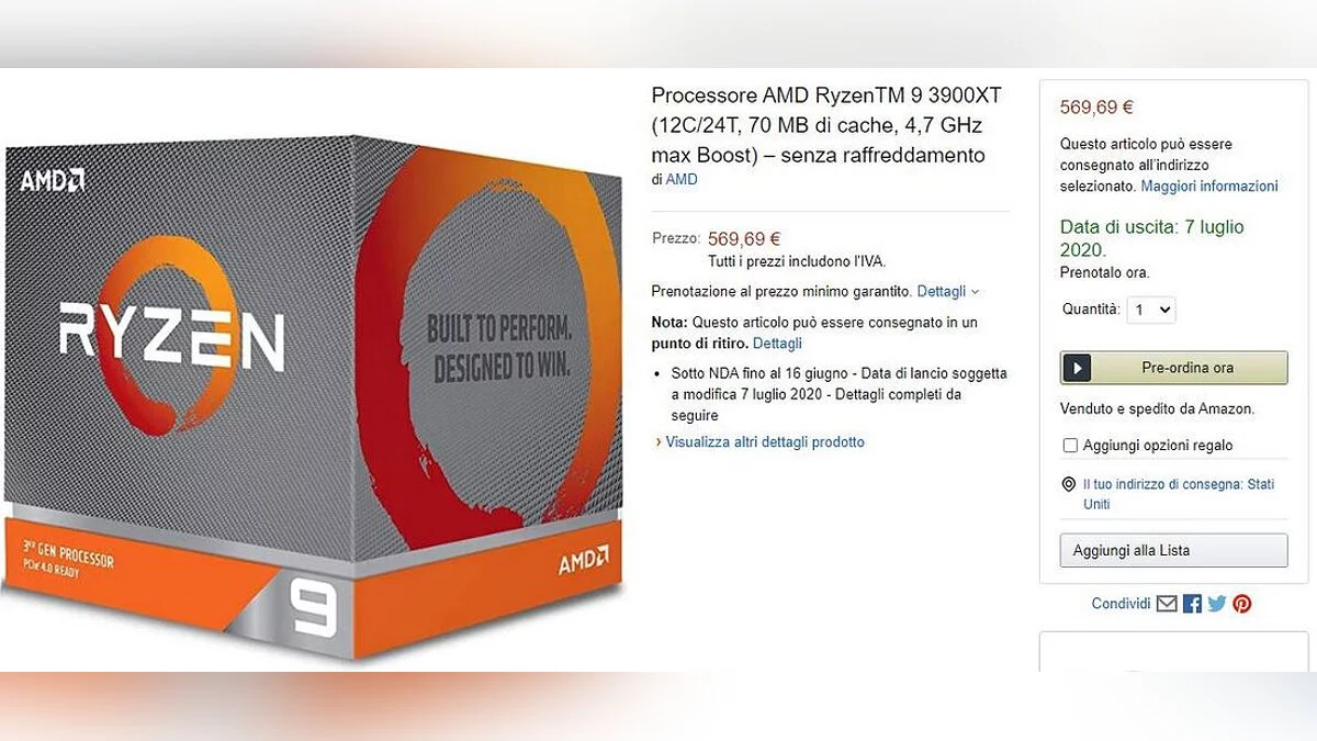 AMD уже совсем скоро покажет улучшенные процессоры Ryzen 3000XT Matisse Refresh. Об этом стало известно благодаря утечке на итальянском и британском отделении Amazon. Там же раскрыли и дату выхода с ориентировочной стоимостью.