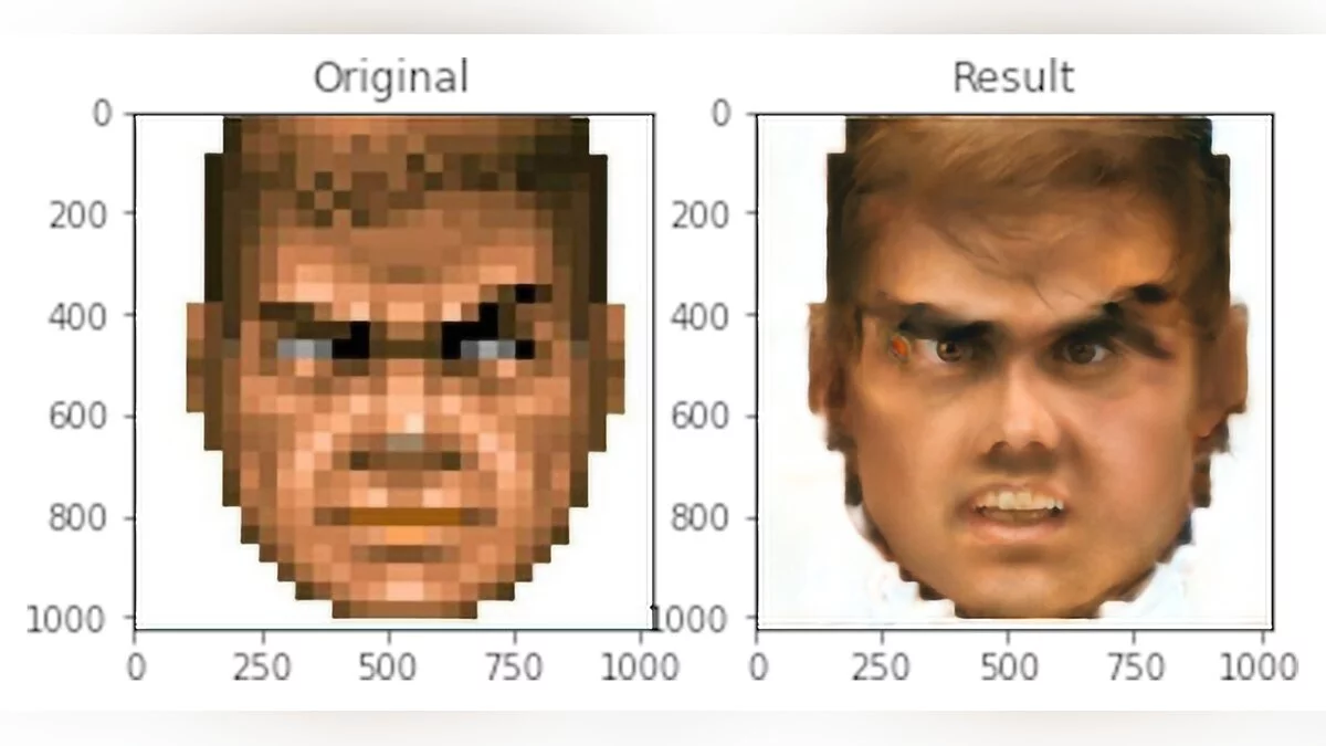 Разработчик под псевдонимом Bomze выложил в открытый доступ нейросеть Face Depixelizer, которая из самых маленьких пиксельных портретных изображений создает фотографию в более высоком разрешении. С помощью этой программы игроки стали «улучшать» героев оригинальных Doom, Wolfenstein, Minecraft и других проектов с пиксельной графикой. Результат вышел далеко не самый реалистичный, а даже страшный и неприятный.
