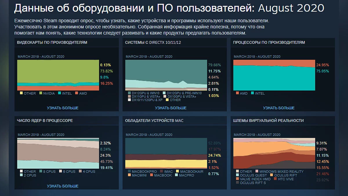 Подробнее с результатами опроса можно ознакомиться Steam.