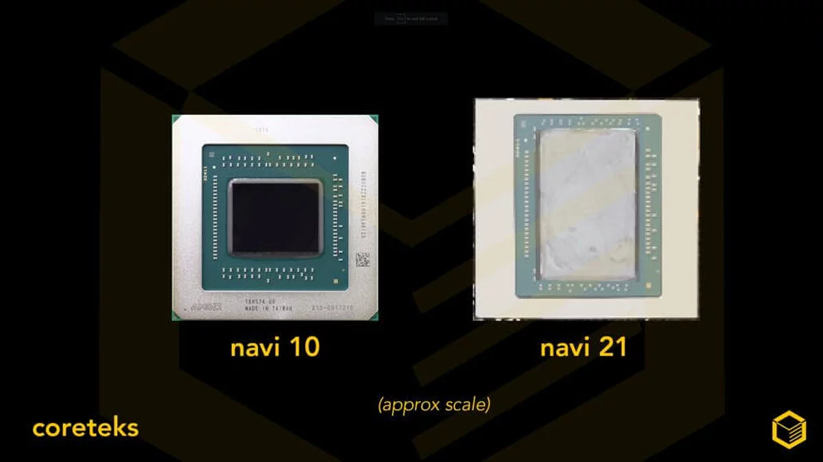 Опубликованный ролик, который, кроме прочего, демонстрирует фото этого графического чипа. Конкретно речь идёт о Big Navi 21, который станет основой флагманского графического ускорителя Radeon RX 6900 XT. Для сравнения там же есть GPU предыдущего поколения.