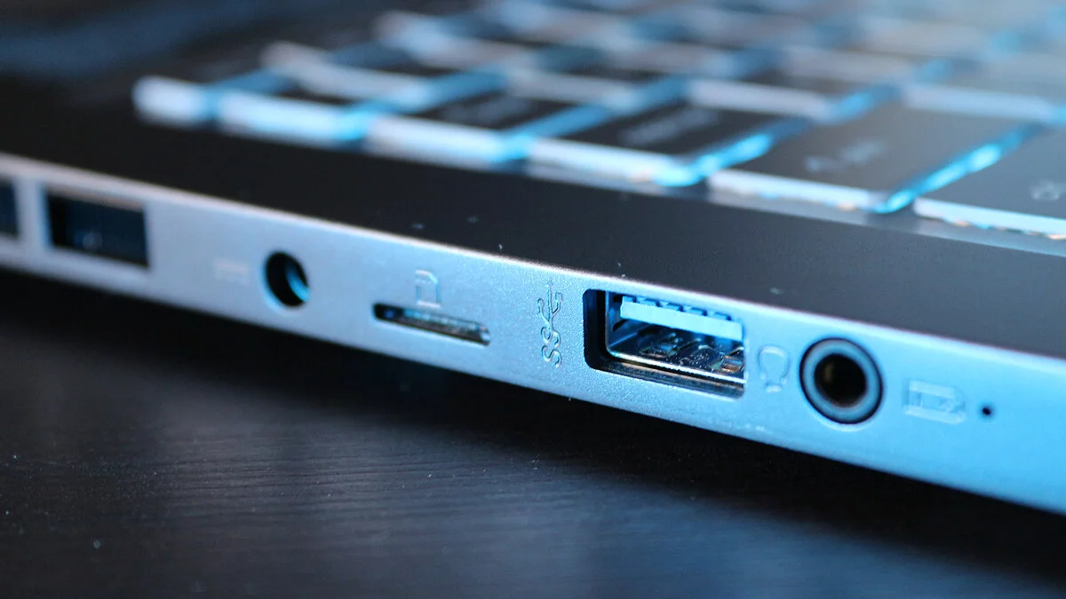 На левой стороне расположились разъем питания, картридер microSD, порт USB 3.0 и аудио-порт.