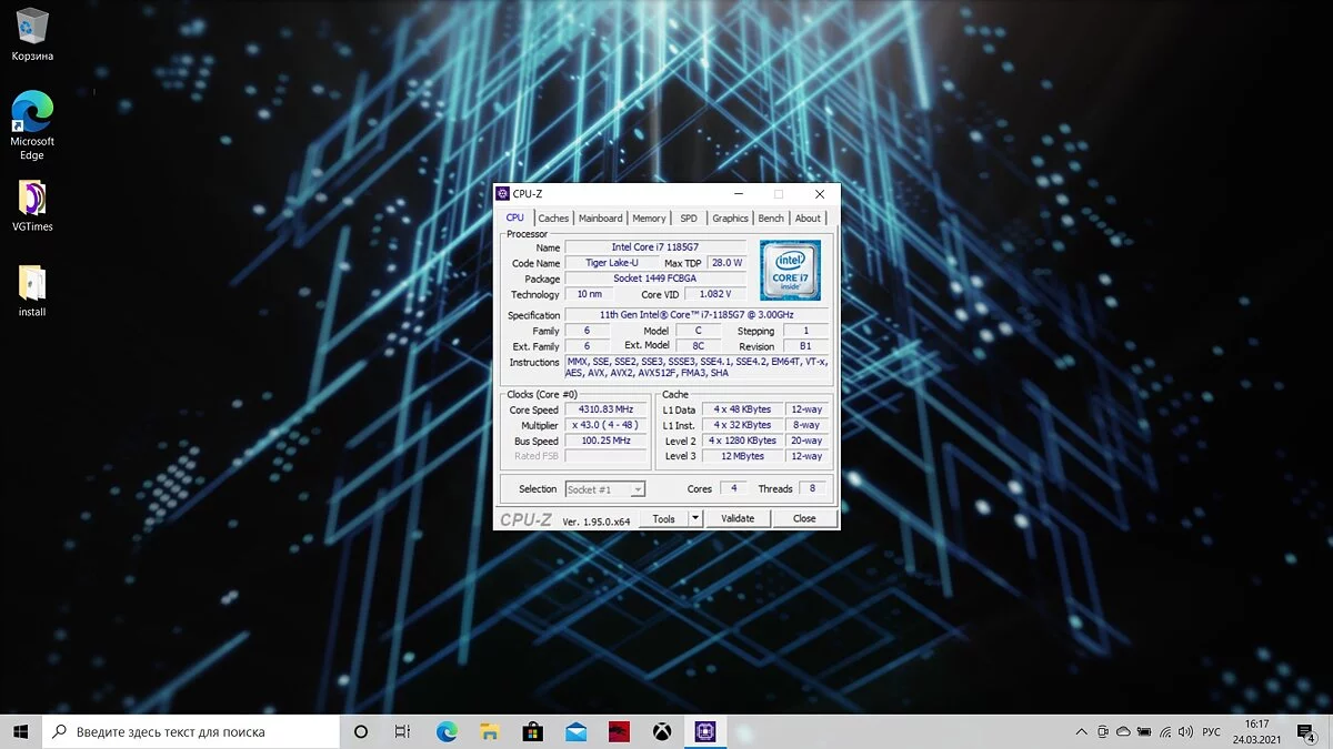 - Процессор 11-го поколения Intel® Core™ i7-1185G7, 3.0 ГГц