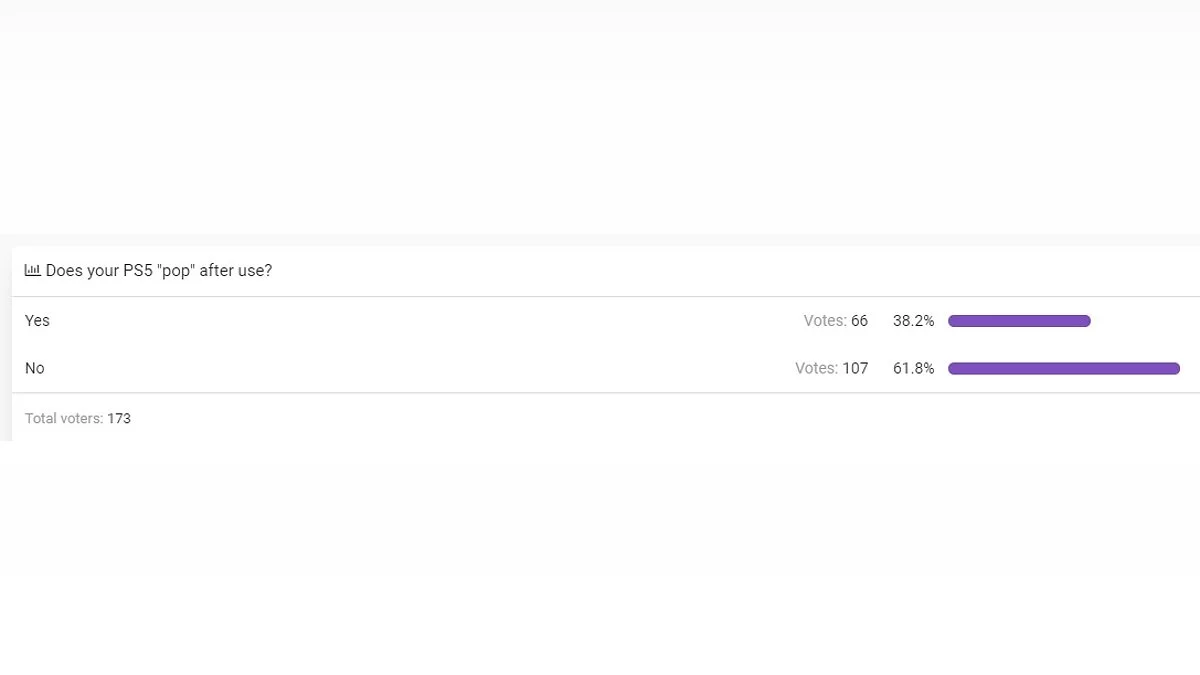 Игроки даже решили провести опрос среди владельцев PS5. На момент написания 38.2% подтвердили, что слышали треск из консоли. Кто-то даже стал шутить, что это так работает встроенная машина для попкорна: «А ты попкорн в неё не загружал?».