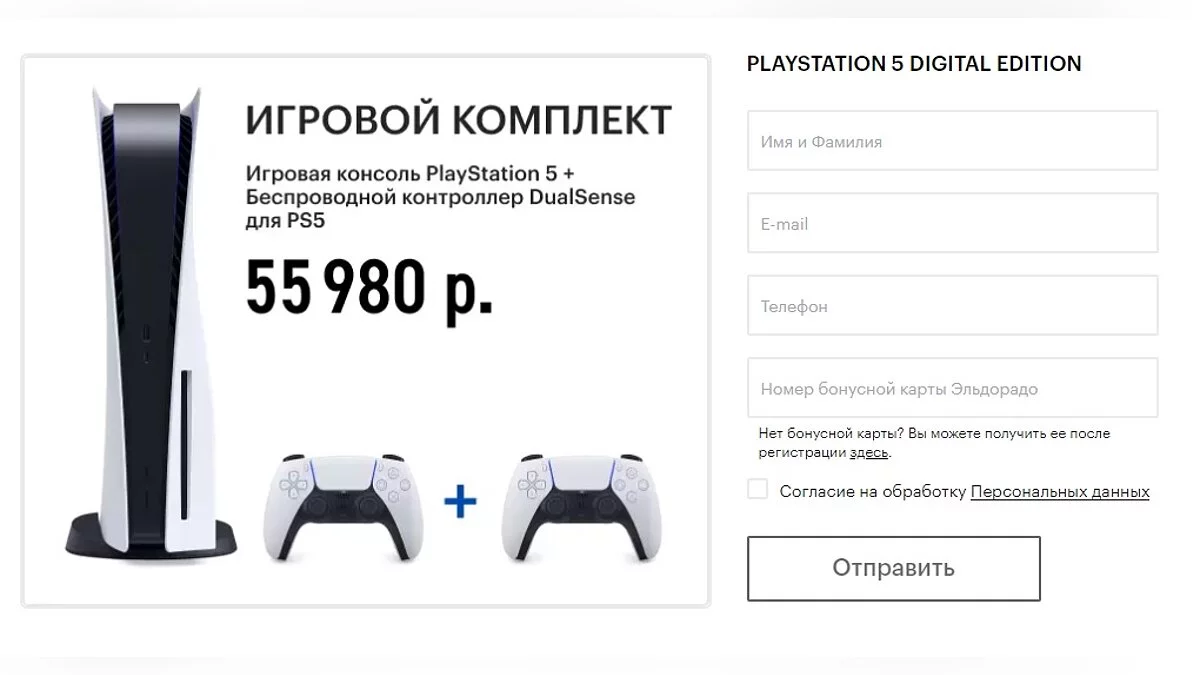 Предзаказ открылся вечером 20 июля. Для приобретения нужно заполнить форму и дождаться звонка от представителя магазина. «Эльдорадо» отметила, что приобрести можно только один комплект и при условии, что ранее вы не совершали покупку PS5 в этой сети.