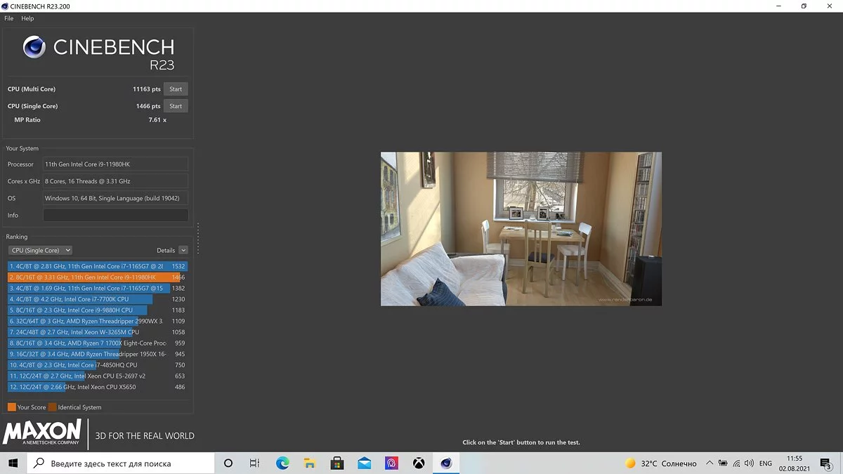 - Процессор: Intel Core i9-11980HK (2,6 — 5 ГГц)