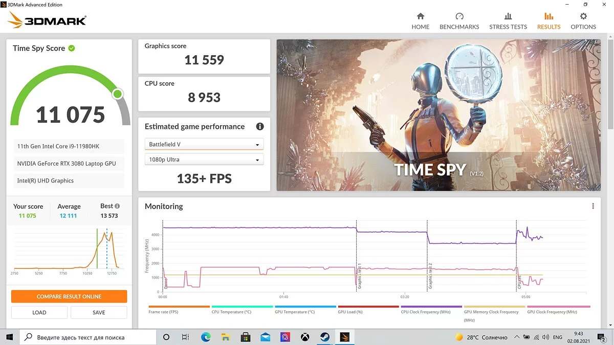 4K 60FPS. Довольно редкая и, можно сказать, уникальная награда для девайсов на наших тестах. Ноутбук MSI GE76 Raider 11UH получает её с небольшой оговоркой — не использовать ультра-настройки.
