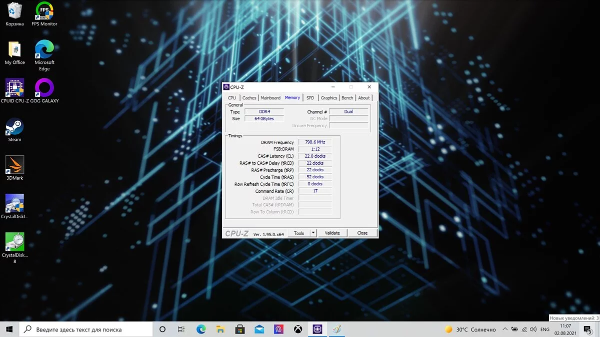 - Память: 64 ГБ (2x16 ГБ) DDR4-3200