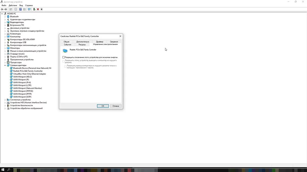 Зайдите в свойства адаптера и перейдите на вкладку «Управление электропитанием». Снимите галочку с «Разрешить отключение устройства для экономии энергии». Далее перейдите в дополнительно и отключите следующие пункты: