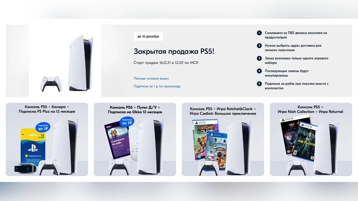 На будущей неделе, 16 декабря, на сайте Ozon стартует закрытая продажа консолей PS5. Надо признать, схема будет отчасти похожа на ту, что анонсировали в «М.Видео». Планируется выбирать счастливчиков из тех пользователей, которые заходят в консольный раздел, но ещё не купили PS5.