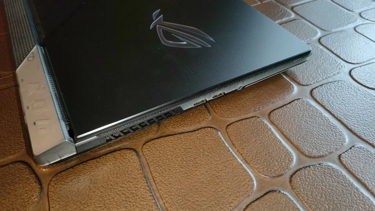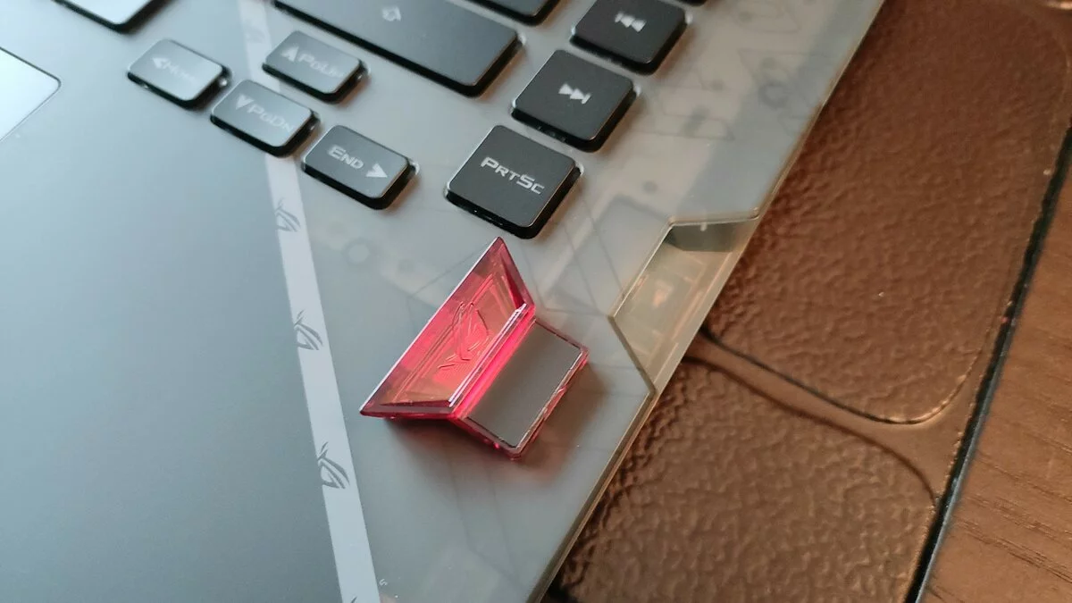 В остальном дизайн вполне привычный — минималистичный и строгий, но с яркой подсветкой в нижней части ноутбука, светящимся логотипом на крышке и другими мелкими деталями в стиле ROG. Внимание уделено даже резиновым ножкам, которые не только позволяют ноутбуку быть устойчивым, но и поглощают вибрации. Производитель постарался, чтобы и они выглядели презентабельно.