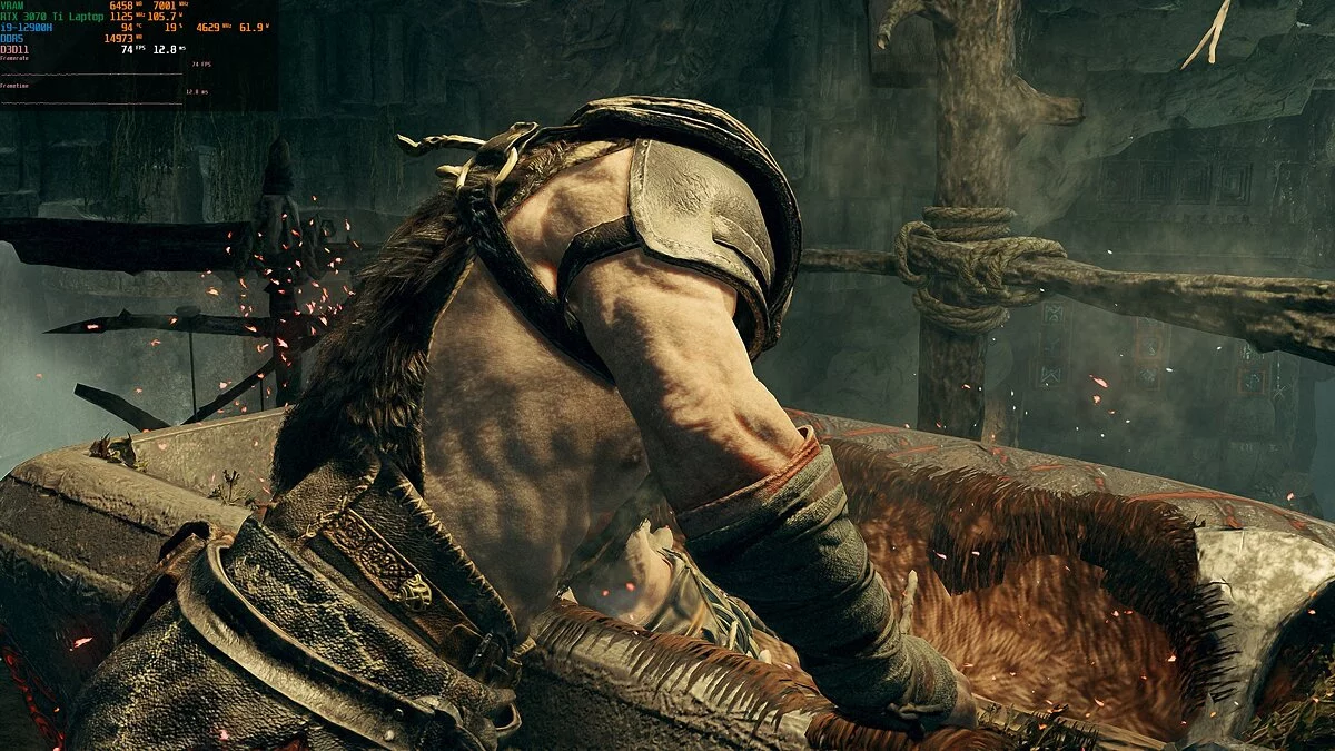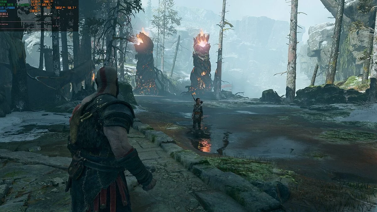В таком режиме игра выдавала стабильно выше 60 кадров даже в тяжелых схватках со множеством противников. Геймплей оставался плавным. Стоит отметить, что была активна технология Reflex, что также положительно сказалось на отзывчивости управления. В более спокойных сценах счетчик показывал более 80 кадров. В очень редких моментах, когда в кадре множество отражений, частота могла опускаться до 50 кадров. Впрочем, максимальные настройки избыточны, поэтому при желании можно спуститься на один пункт, практически не теряя в качестве картинки.