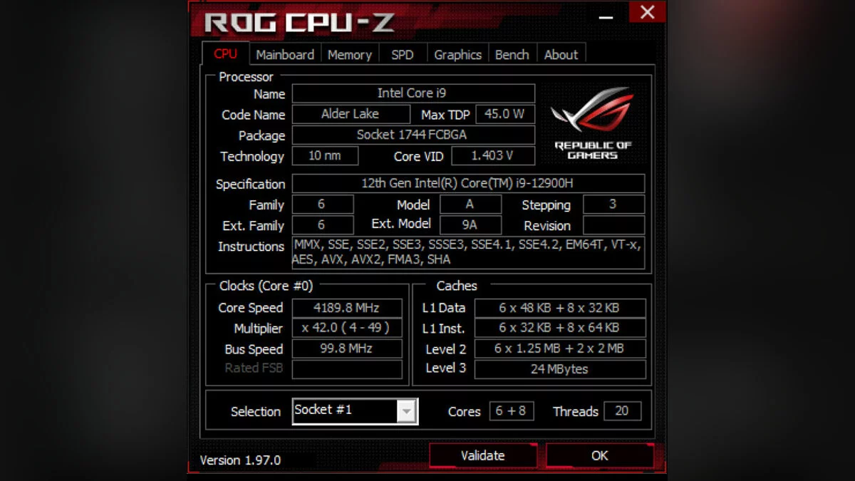 В ROG Strix Scar 15 установлен новый Intel Core i9-12900H. Интересен он в первую очередь гибридной архитектурой. Это значит, что процессор обладает двумя типами ядер: производительными и энергоэффективными. В нашем случае у процессора шесть производительных ядер, а также восемь энергоэффективных. Всего 14 ядер и 20 потоков (энергоэффективные ядра не поддерживают Hyper Threading).