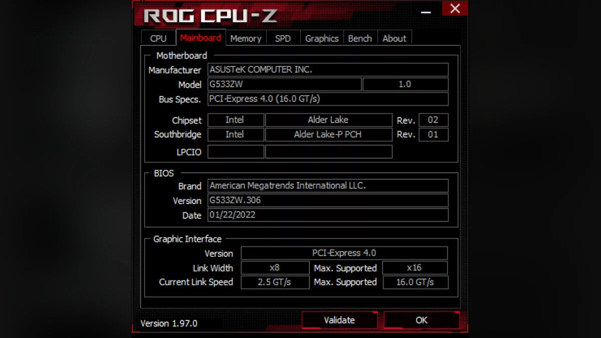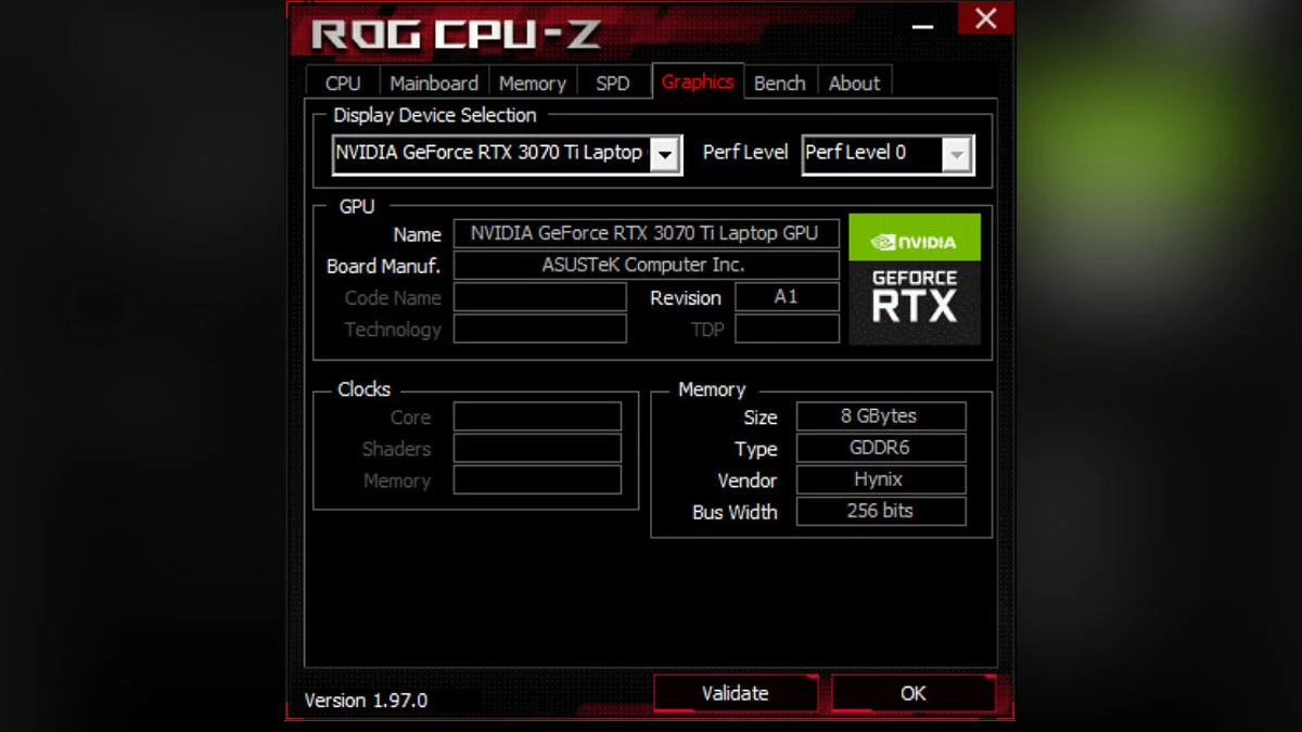 В качестве видеокарты используется новинка — RTX 3070 Ti для ноутбуков. TGP видеокарты составляет 150 Вт (125 Вт + 25 Вт с технологией Dynamic Boost). Объем видеопамяти — 8 гигабайт, которых должно хватить для целевого разрешения 1440p. Во всей линейке ноутбуков ROG 2022 года есть переключатель (MUX switch), который позволяет выводить изображение напрямую с дискретной видеокарты. По заявлениям производителя, это снижает латентность и увеличивает производительность до 15% в соревновательных играх.