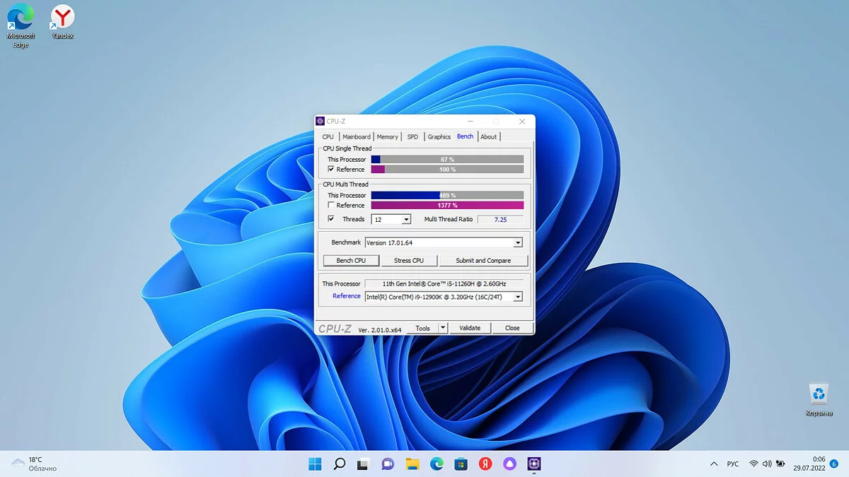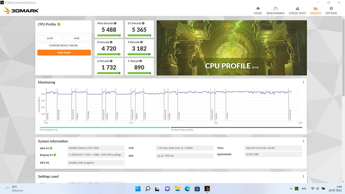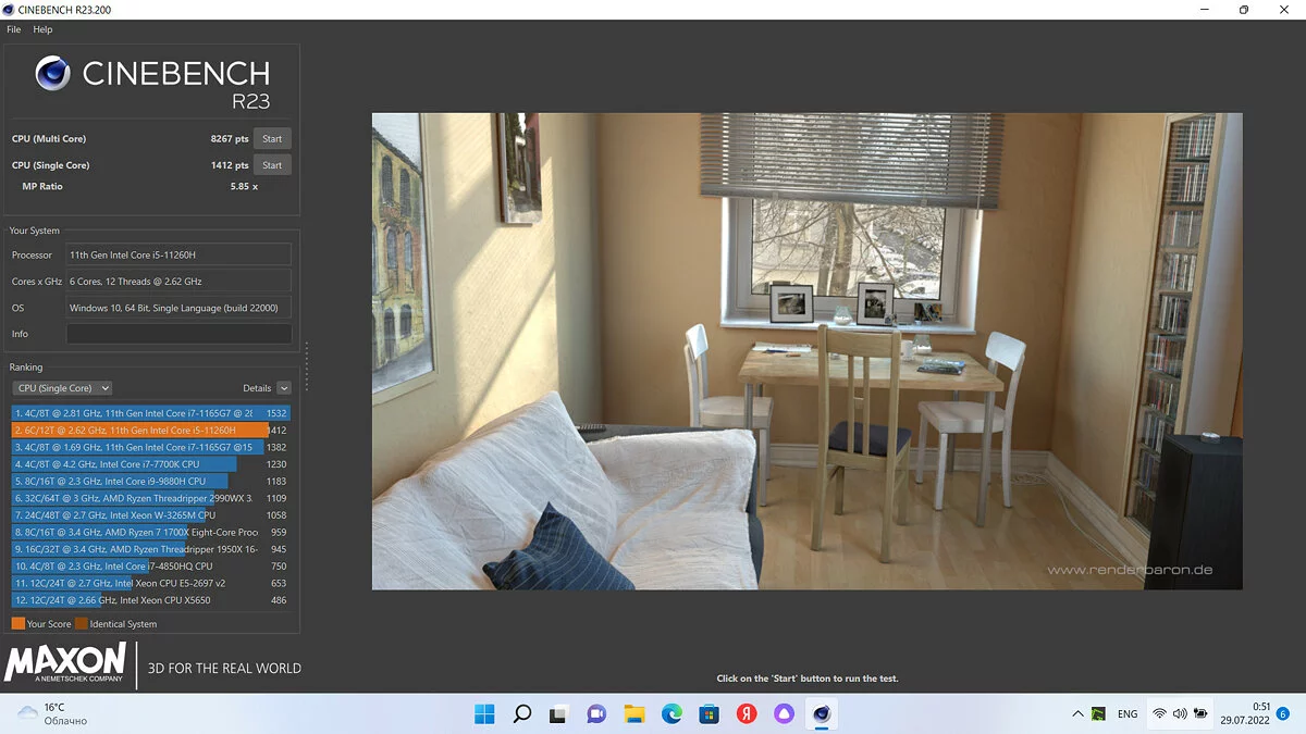 Ноутбук мы тестировали при помощи приложений Cinebench R23, CPU-Z и CrystalDiskMark. Результаты на скриншотах: