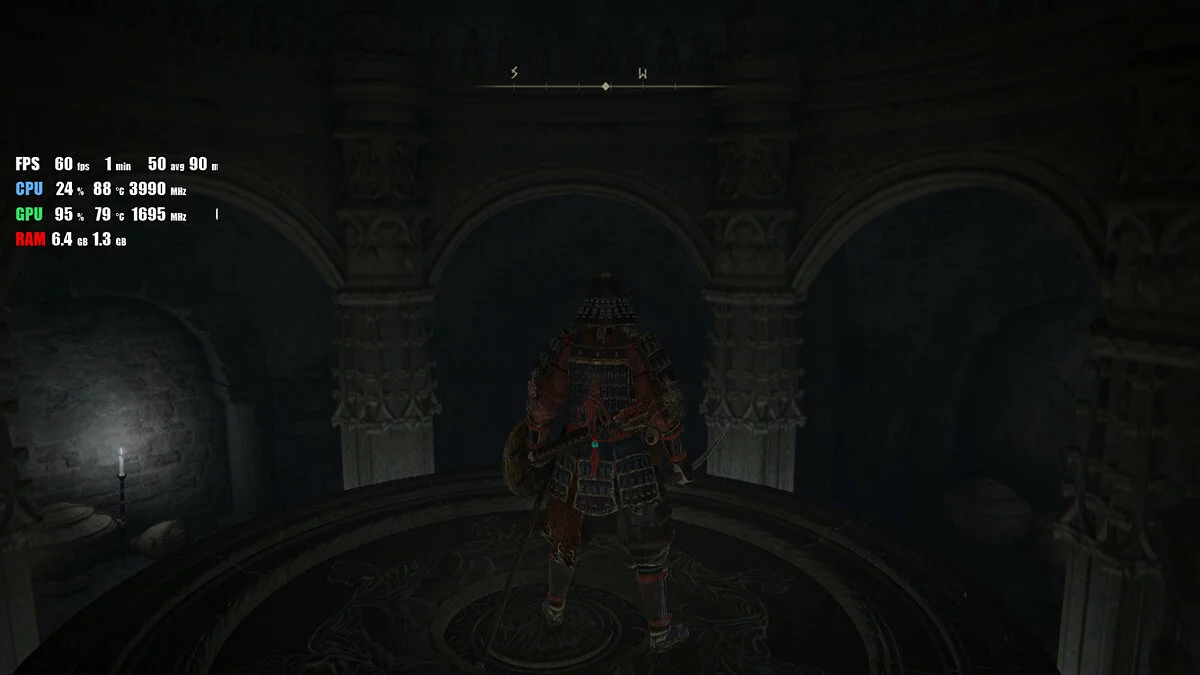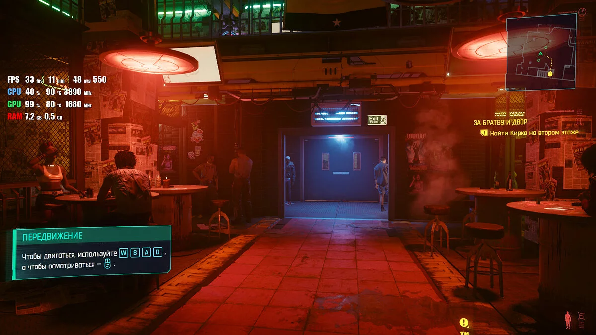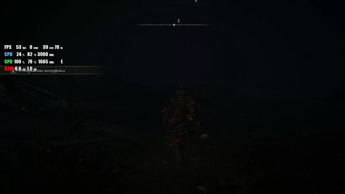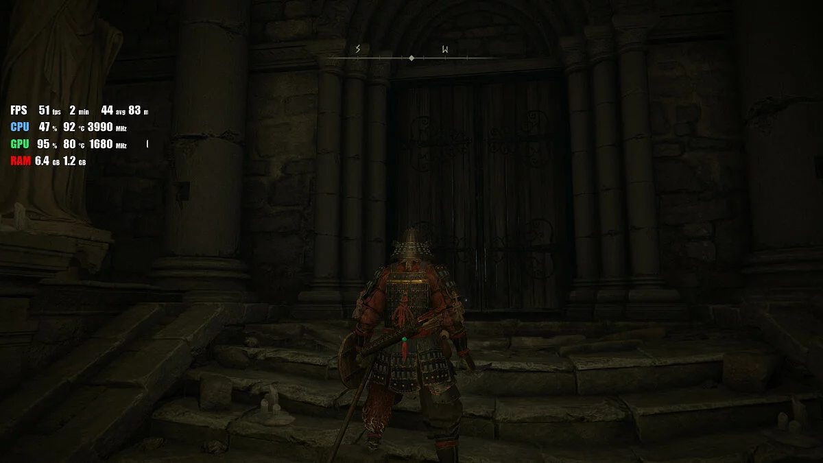 Максимальные параметры закрепились возле отметки в 40 FPS с небольшими скачками вверх и вниз. На высоких и средних настройках частота кадров держалась в пределах 50-60 FPS в закрытых помещениях и в районе 46 FPS на открытых пространствах
