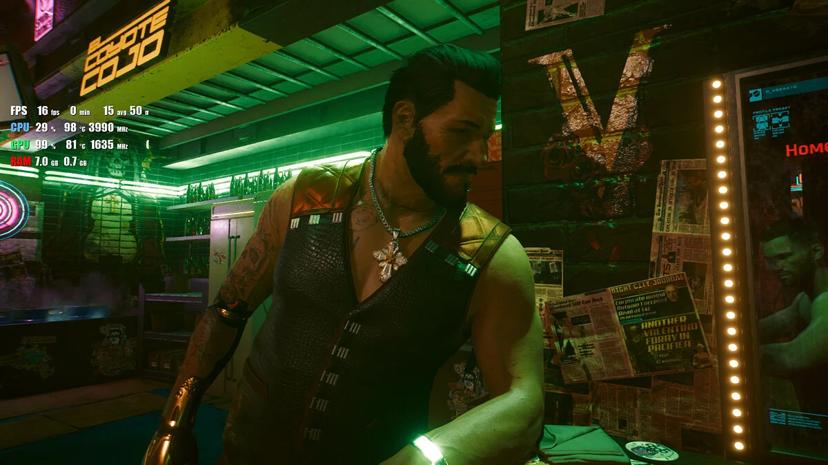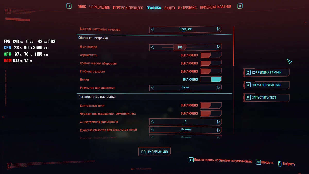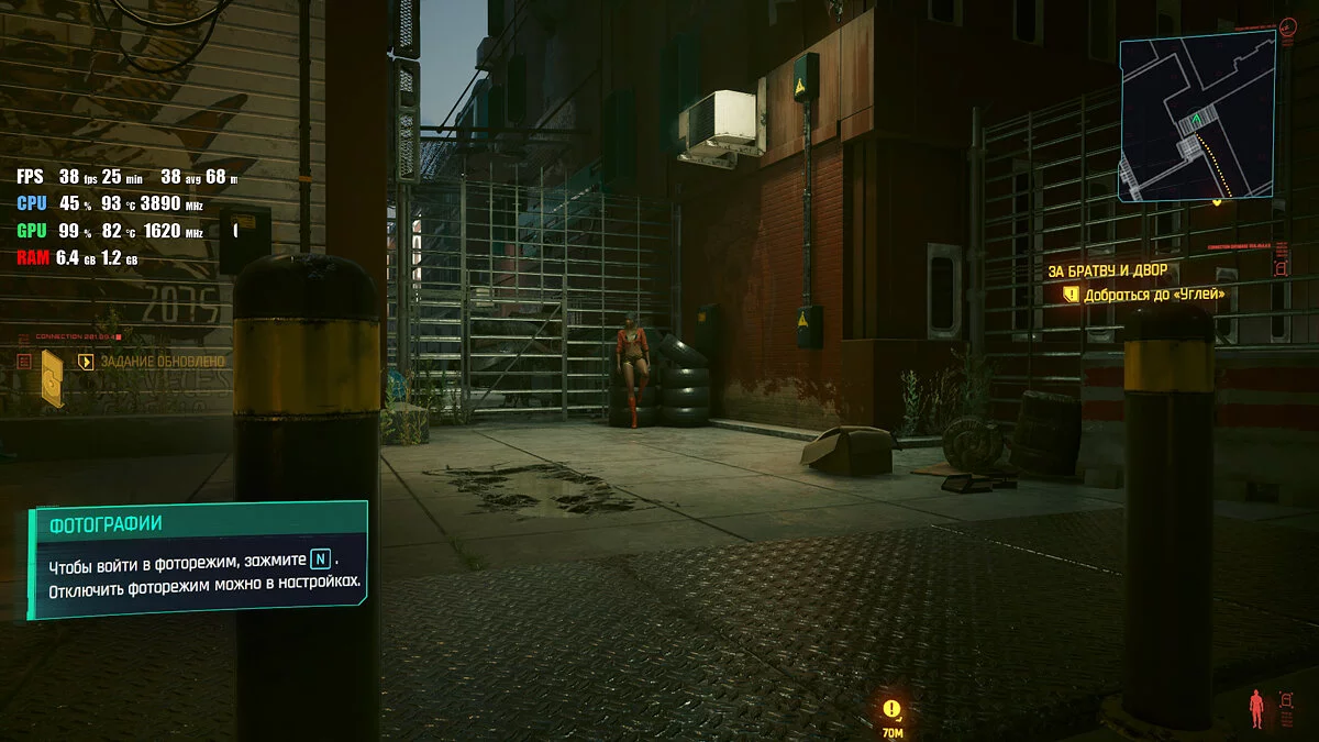 Cyberpunk 2077. Как и следовало ожидать, игра CD Projekt RED даже с последним патчем оказалась требовательна к железу ноутбука. В некоторых кат-сценах была заметна просадка частоты кадров. На максимальном уровне графики лэптоп едва вытягивал 30 FPS. На средних настройках играть более или менее комфортно, ноут вытягивал до 38 FPS.