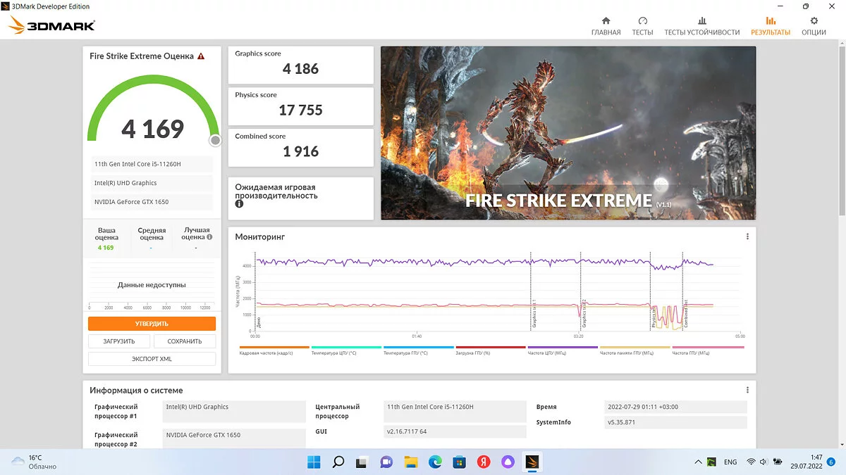 Также оценили производительность в 3DMark, тесты Time Spy Extreme, Fire Strike Extreme, Wild Life Extreme, CPU Profile, Mesh Shader feature test и VRS feature test.