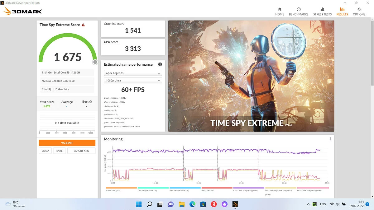 Модель 911 Air D оснащена 15,6-дюймовым экраном, процессором Core i5 11-го поколения, видеокартой NVIDIA GTX 1650 и 8 Гб оперативной памяти. С помощью синтетических и игровых тестов проверим готовность устройства справиться с различными нагрузками.