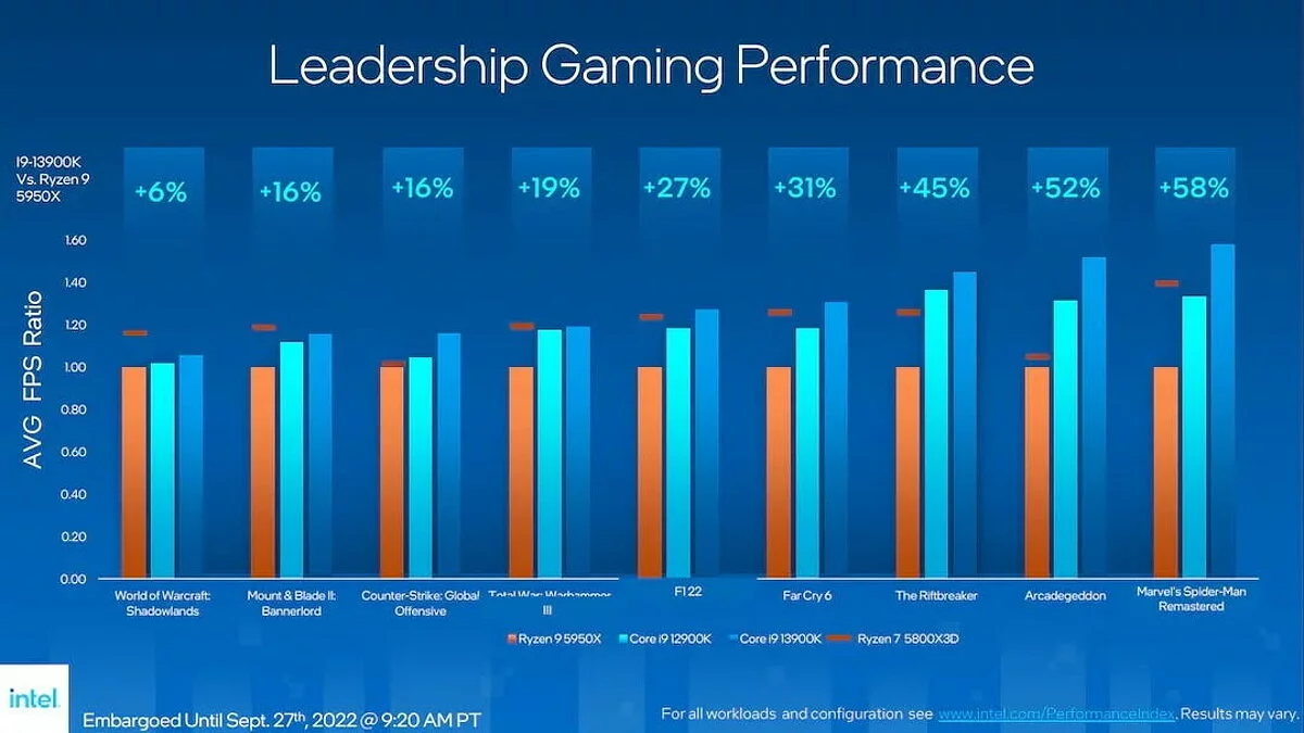 Утверждается, что процессоры существенно превосходят Ryzen 9 5950X и Ryzen 7 5800X3D, в некоторых случаях прирост в играх составляет 58%. Почему новинки не сравнили с Ryzen 7000, пока неясно.
