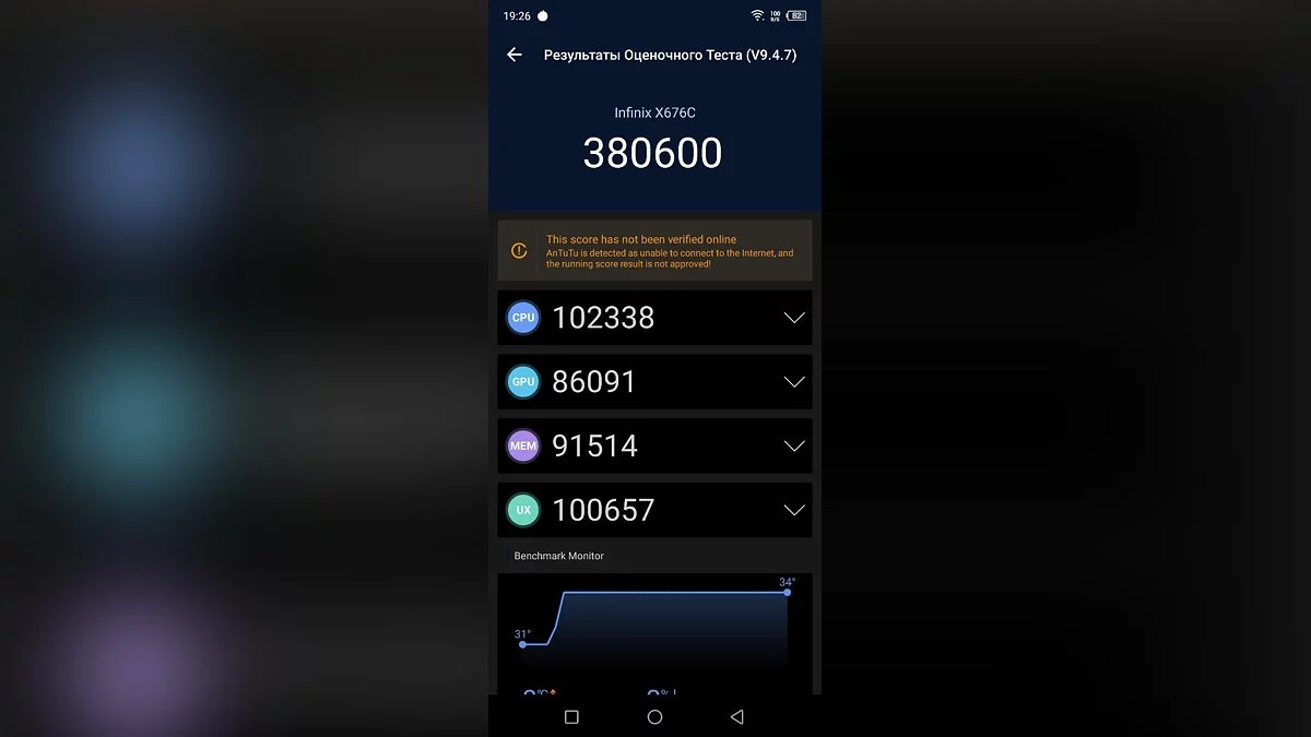 Для проверки технических возможностей Infinix Note 12 2023 мы воспользовались классическими бенчмарками без изменения предлагаемых настроек — AnTuTu, Androbench и CPU Throttling Test. Результаты можно увидеть на скриншотах ниже.