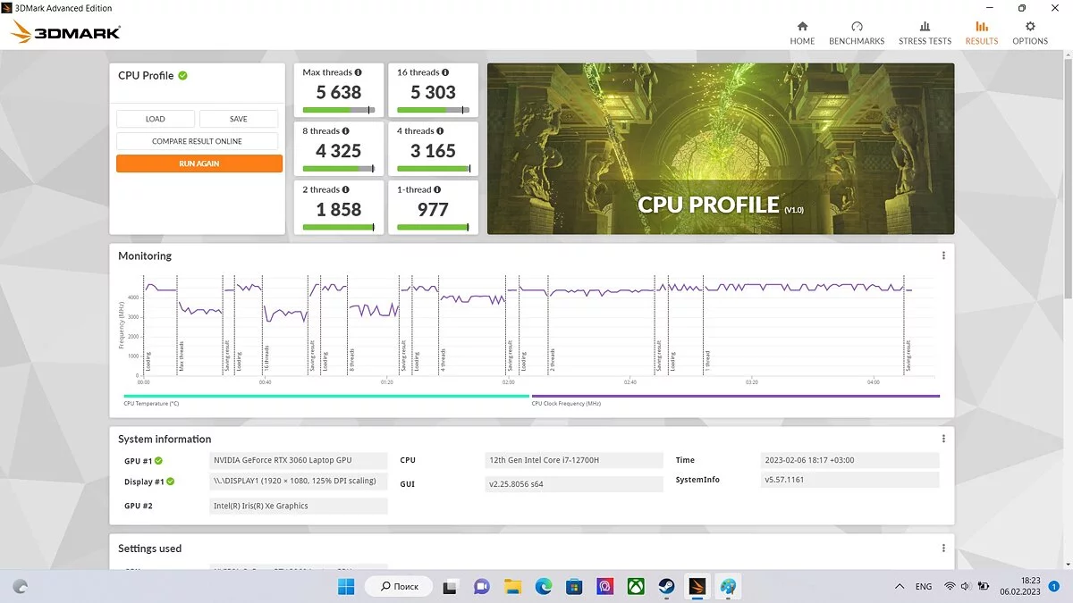 Также мы оценили мощность ноутбука в 3DMark: в тестах Time Spy и CPU Profile. Скорость работы SSD проверили в отдельном тесте Storage Benchmark.