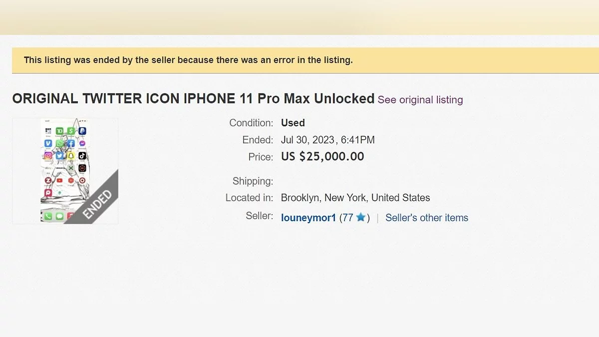 Кто-то решил подзаработать и хотел продать iPhone со старым логотипом Twitter за $25 тыс