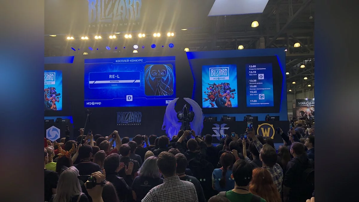 Пройдя все рамки и контроли посетители попадали в большой зал, где их встречала огромная сцена Blizzard, на которой проходил конкурс косплея и тематические конкурсы для фанатов игр компании. За ней расположилась таверна из Hearthstone, при виде которой в голове сразу проигрывается мелодия из главного меню.