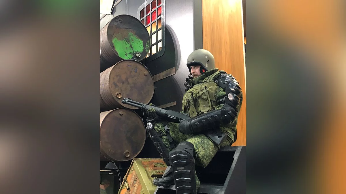 Metro Exodus достался целый вагон поезда. Рядом с ним расположился пост грозных вооруженных солдат, коротающих время до отправки на следующую станцию.