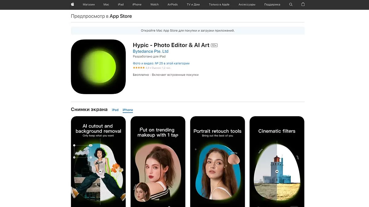 Переходим к программам из App Store. Здесь вы сможете скачать онлайн-библиотеку со множеством бесплатных треков со всего мира, ИИ-редактор для снимков, программу для записи экрана iPhone и трансляции геймплея, а также приложение для наблюдения за состоянием устройства.