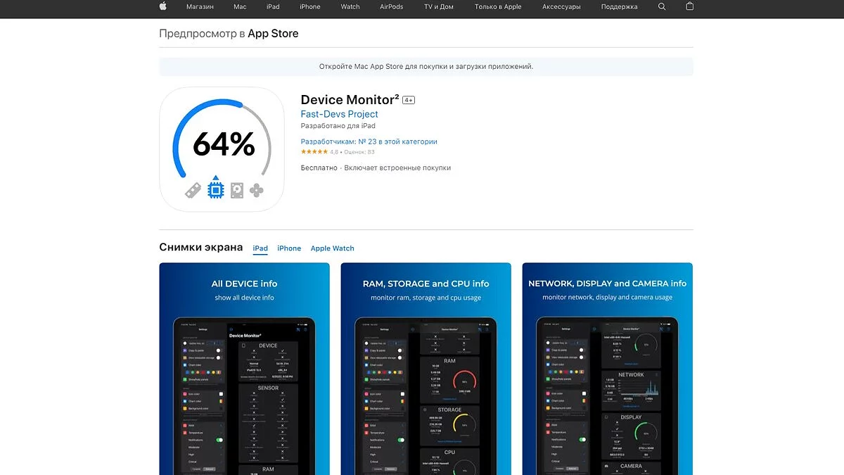 Для тех, кто любит держать все под контролем. Если вас волнует расход батареи или излишняя нагрузка некоторых приложений, с помощью этой программы вы увидите все характеристики вашего iPhone и сможете следить за состоянием хранилища, камеры, GPU, процессора, ОЗУ и много чего еще. Все данные сервис конвертирует в удобные графики и диаграммы, так что вы получите еще и наглядное представление о работе устройства.