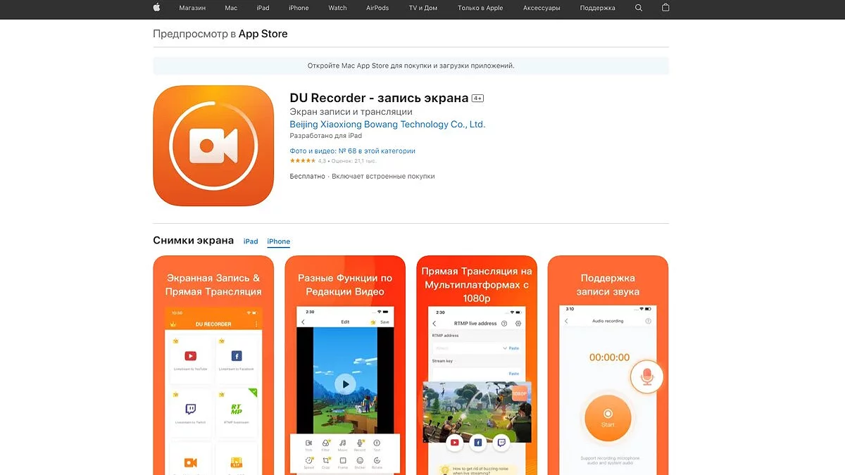 Простая и удобная программа для записи экрана и трансляций с вашего iPhone с высоким качеством картинки и звука. Кроме прочего, можно отредактировать ролик, удалив лишнее, изменив скорость или добавив субтитры. Есть возможность даже сделать GIF из видео и поделиться им с друзьями.