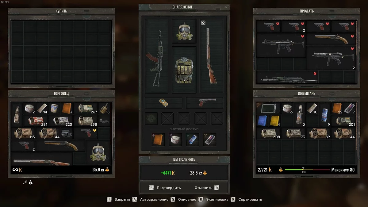 Мы уже неоднократно говорили о проблемной экономике в S.T.A.L.K.E.R. 2. Мало того, что цены за услуги и на новую экипировку весьма завышены, так еще и весь найденный лут сбывается за бесценок. При этом вы не сможете разжиться деньгами на продаже вражеского оружия, как в первой части. Все из-за того, что пушки противников зачастую сломаны, а продавцы отказываются их покупать без дорогостоящего ремонта. Любой предмет с красным маркером сбоку становится хламом, который можно только выкинуть.