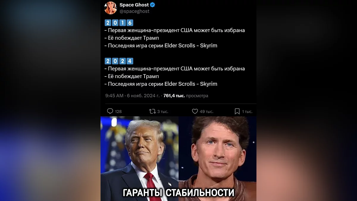 Ну и американские президентские гонки тоже не остались без внимания. Президенты меняются, а у Тодда Говарда (Todd Howard) всё стабильно.