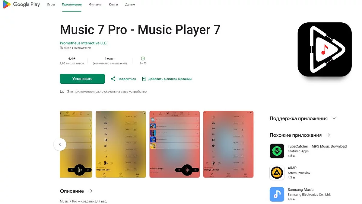 Высокооцененное приложение для прослушивания музыки на смартфоне. Есть дневной и ночной режимы, несколько типов воспроизведения для разных категорий слушателей, визуальные эффекты для треков, перечень дизайнов на любой вкус, эквалайзер и другие приятные и удобные функции.