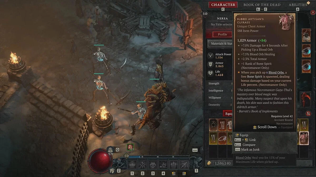 Игровой процесс четвертой части сочетает в себе классические элементы серии — динамичные сражения с толпами противников, персонажей с уникальными способностями и набором навыков, сбор и улучшение экипировки, а также многоуровневую прокачку и участие в различных событиях. Ключевой особенностью Diablo 4 стал открытый мир, который позволяет свободно исследовать разные регионы, помогать другим игрокам, участвовать в массовых событиях, сражаться на PvP-аренах, зачищать башни и многое другое.