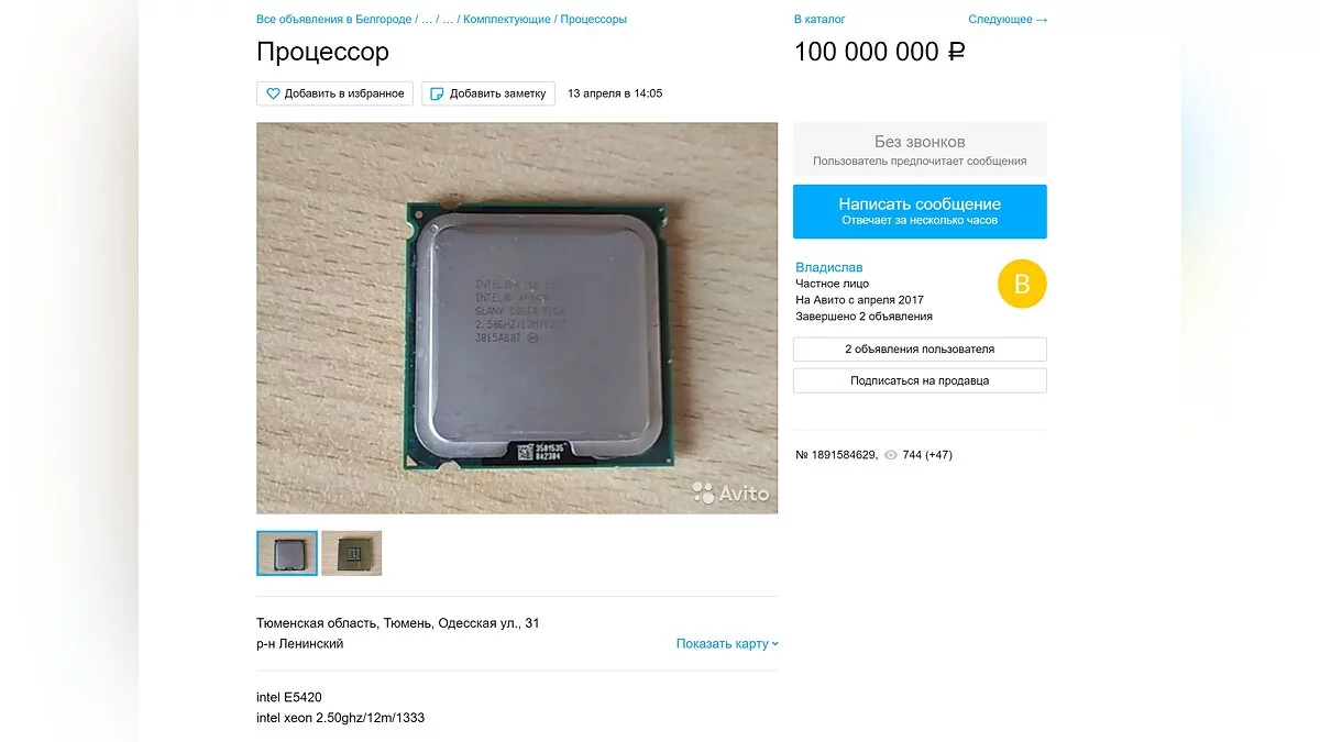 Быть ПК-геймером становится дороже с каждым днем. Если вы удивлялись от ценников на топовые сборки компьютеров, вы точно не заходили на Авито. Вот вам, к примеру, процессор от intel за 100 миллионов рублей.