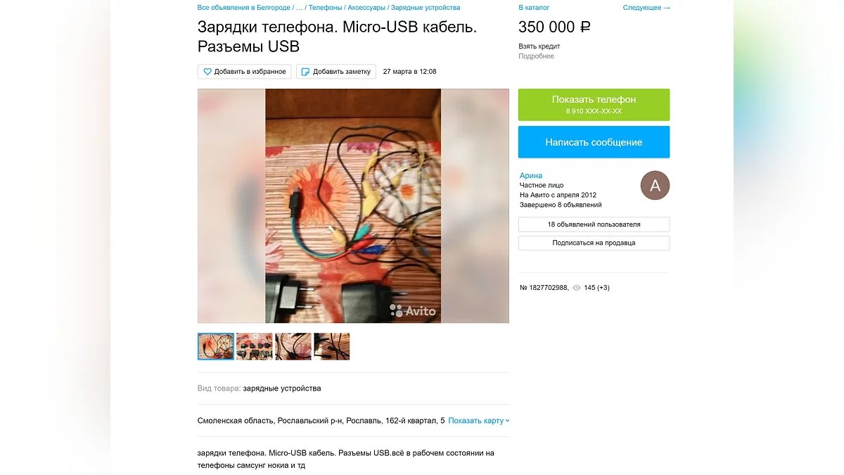 Любая вещь недолговечна, и зарядные устройства не исключение. Предположим, вы купили себе один из вышеописанных телефонов, но спустя время порвали кабель, что делать? Конечно же, отправляться на Авито и крайне выгодно покупать комплект «зарядок» всего за 300 тысяч рублей.
